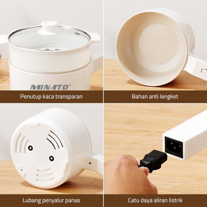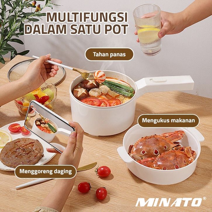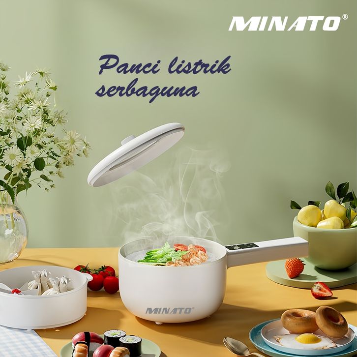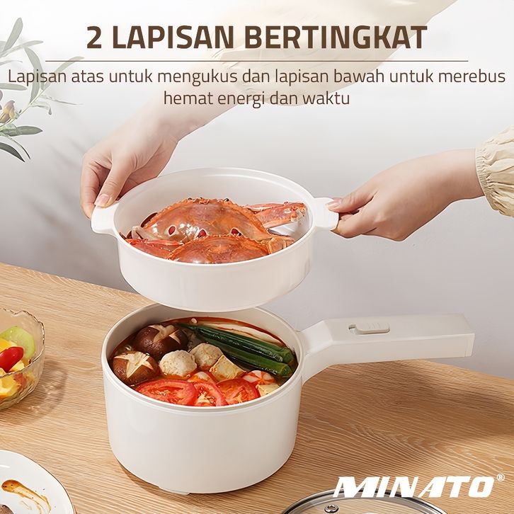 TERLARIS MINATO Panci Listrik Fry Pan Electric (2in1) M-P600 - Panci Penggorengan Keramik Elektrik Free Steamer