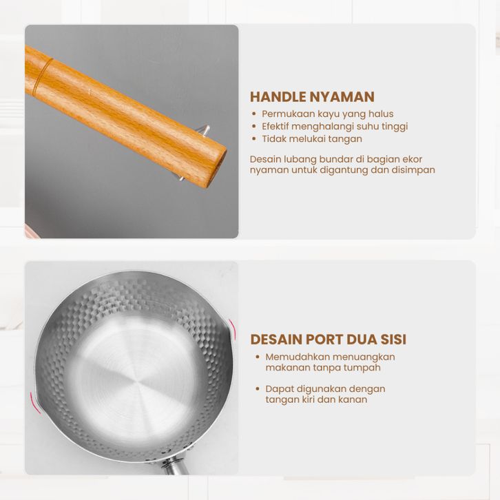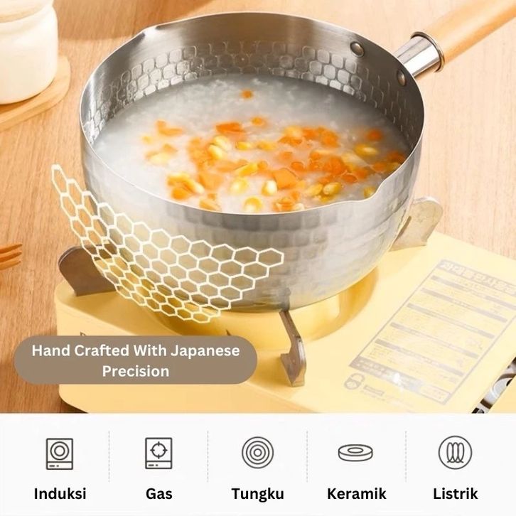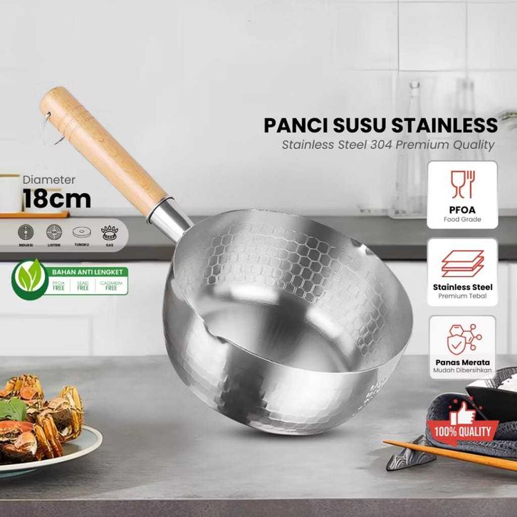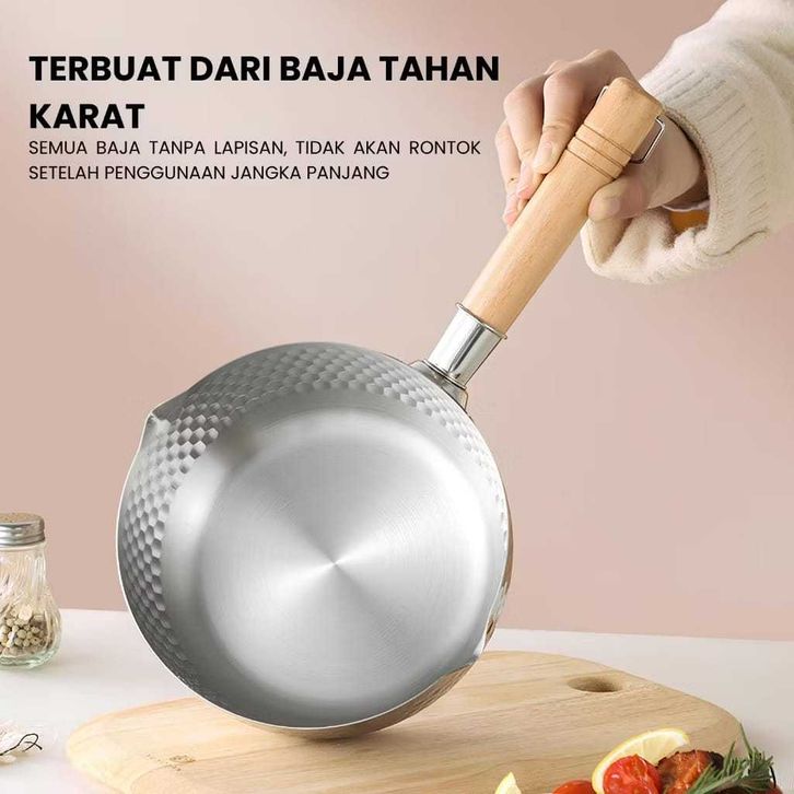 NEW Panci Susu Stainless Steel Gagang kayu Anti Karat Milk Pot Panci Mie Rebus Anti Lengket Bahan Tebal ugamng