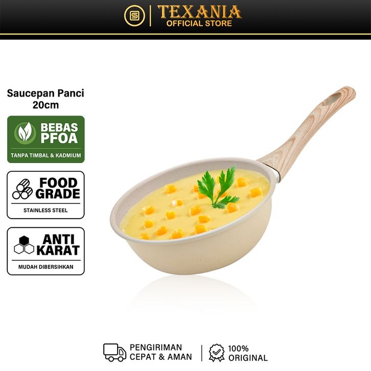 TERLAKU TEXANIA Saucepan Panci Susu 20cm Wajan Anti Lengket Stainless Steel Mudah Dibersihkan Bebas PFOA PFOS
