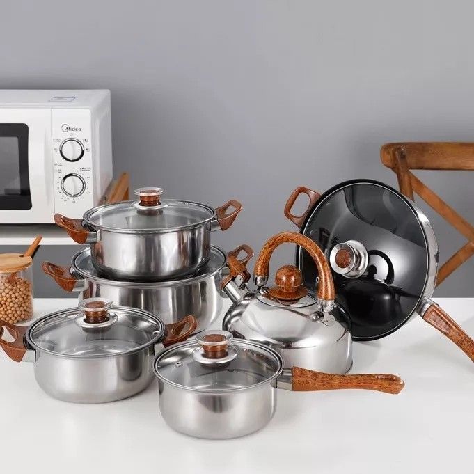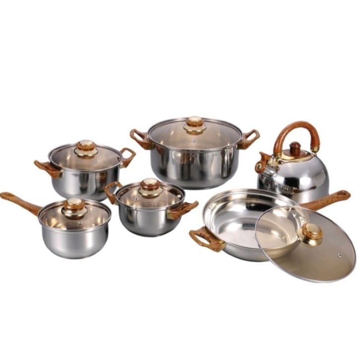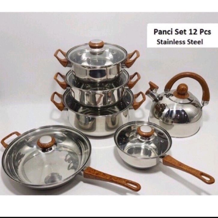 TERMURAH Panci Set 12 Pcs + Teko Stainless Cookware Set Tutup Kaca inasl