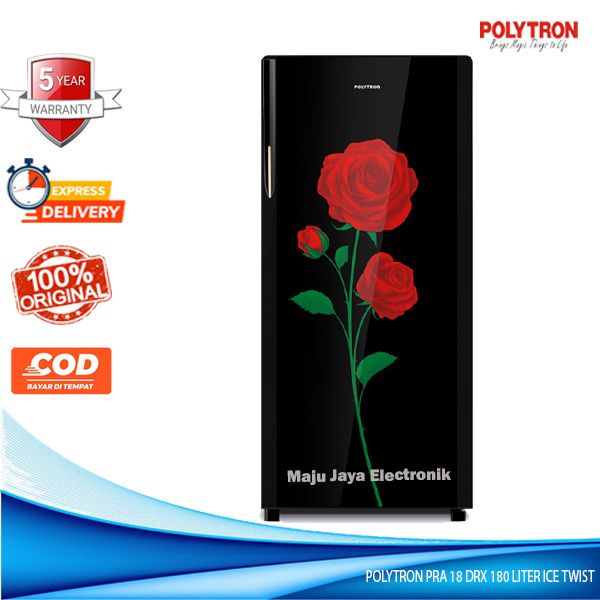 Kulkas 1 Pintu POLYTRON PRA 18 DRX GAGANG Glass Door 180 Ltr Ice Twist