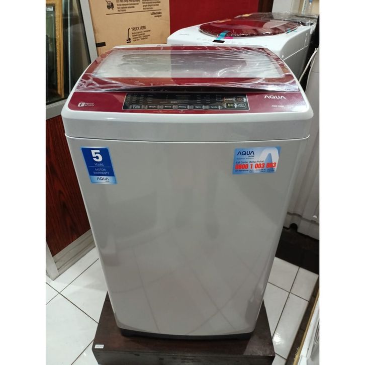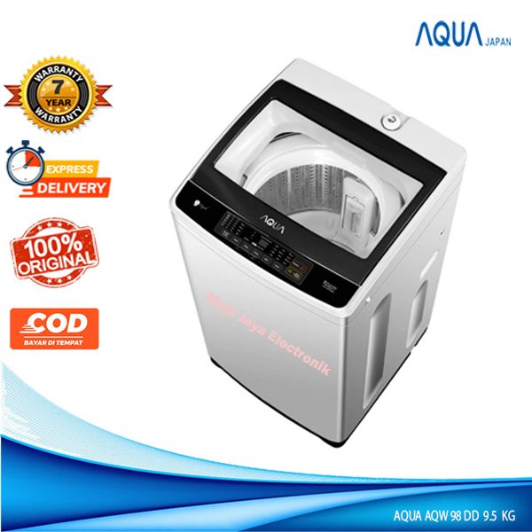 Mesin Cuci 1 Tabung AQUA Sanyo AQW 98DD Hijab series Full Otomatis Glass Door Cuci dan Kering 9.5 KG