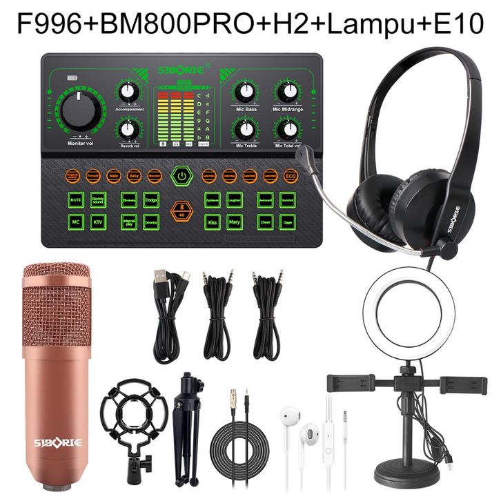 Siborie F996+BM800PRO+H2+Lampu Paket Lengkap Soundcard Mic Headphone 100. Original Satu Set Dudukan Lengkap