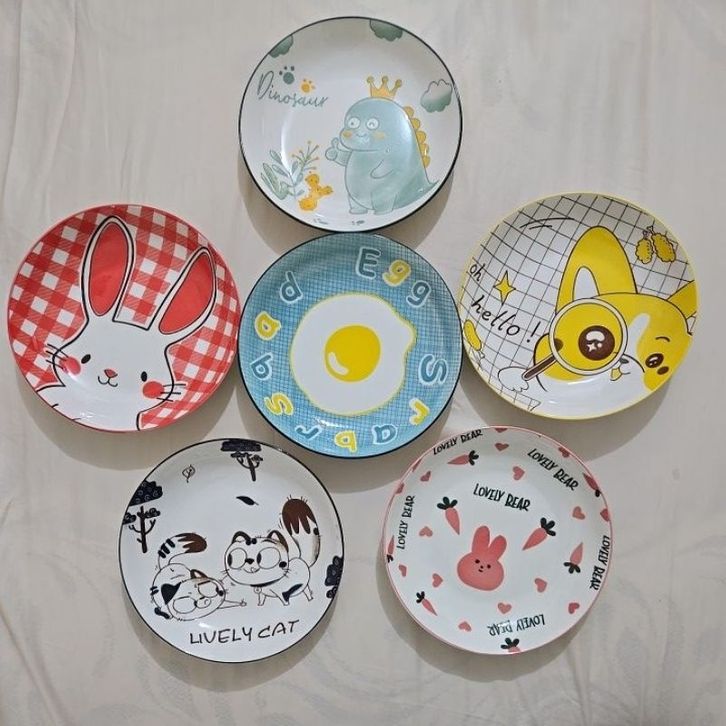 TERLAKU Piring Keramik 8 Inch Lucu Korea Motif Kartun 20 cm ihigk