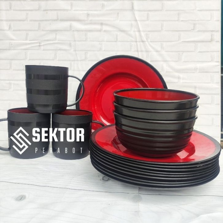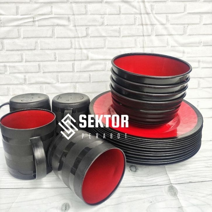 TERLAKU PAKET LENGKAP ISI 1 LUSIN (4 PIRING+ 4 MANGKOK+4 GELAS) Ramen plastik - Piring Ramen - Mangkok ramen -