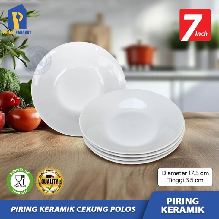 GROSIR 3 Pcs Piring Makan Bahan Keramik Cekung Polos Soup Plate 7inch agilh