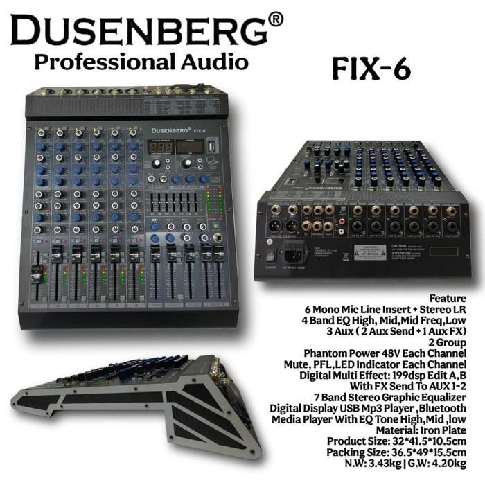 Dusenberg Mixer Audio Fix-6 Channel Original Resmi dengan 6 Mono Mic Line Insert