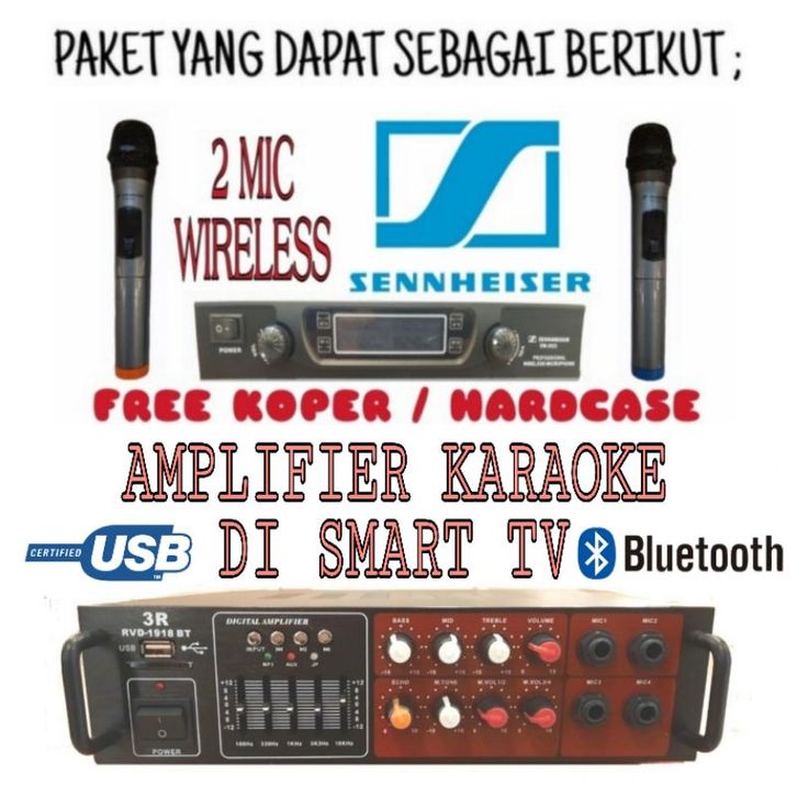 Paket Amplifier 3R RVD - 1918 BT Bluetooth Dan 2 Mic Wireless