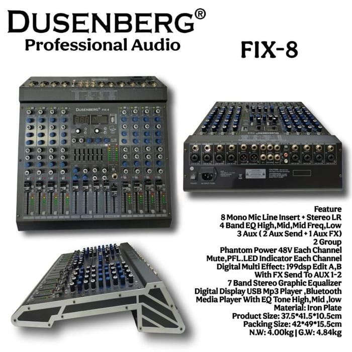Dusenberg Mixer Audio Fix-8 Channel Original Resmi dengan 8 Mono Mic Line Insert