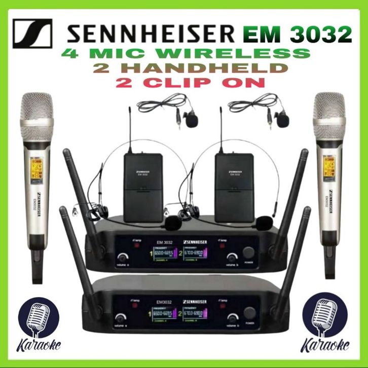Mic wireless Sennheiser EM 3032 jarak Jauh 2 Clip On 2 Handheld 4 Mic