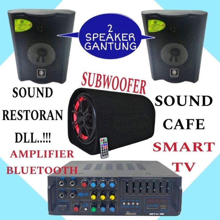 PAKET SOUND MINI 2 SPEAKER GANTUNG, 1 SUBWOOFER BUAT DI CAFE, RESTORAN