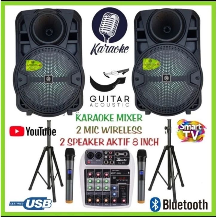 Karaoke Mixer 2 Mic Wireless Speaker 3R Aktif 8 Inch Karaoke Smart Tv Youtube