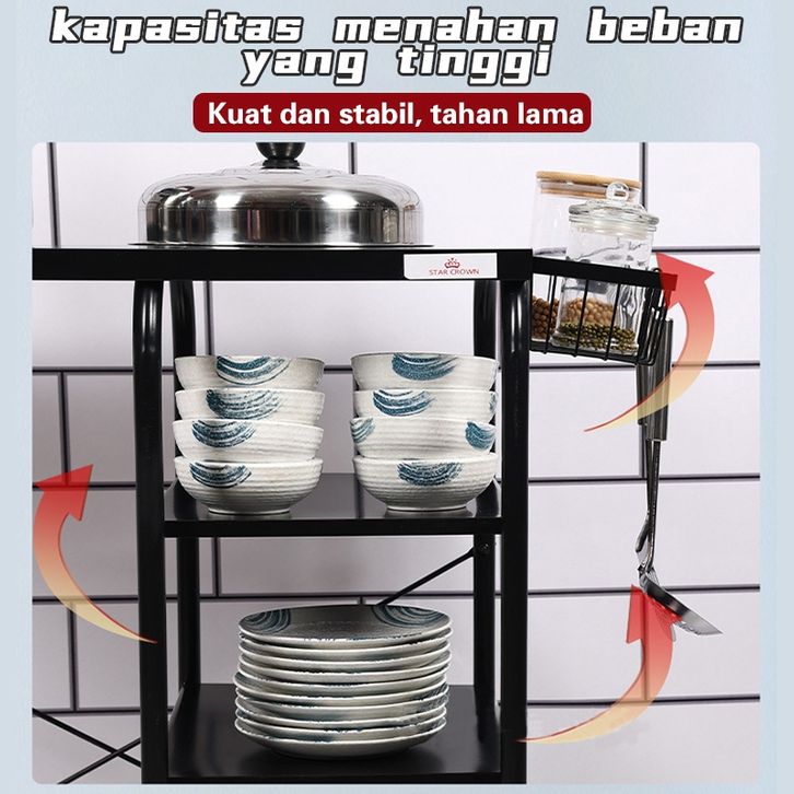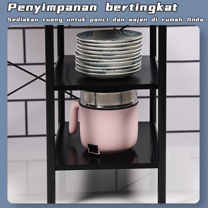 PROMO Homsaura Rak Kompor 3 Tingkat Rak Dapur Serbaguna Lemari Dapur Tertutup Rak Dapur Besi Minimalis Anti