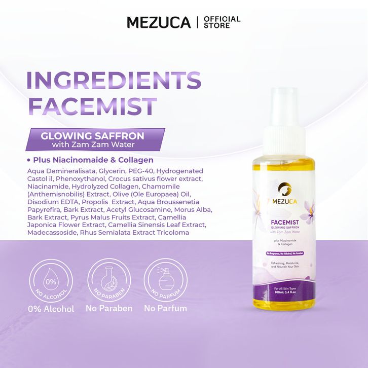 Face Mist Safron with Zam Zam Water Niacinamide Collagen BPOM 100ML Facemist Air Facemist Saffron