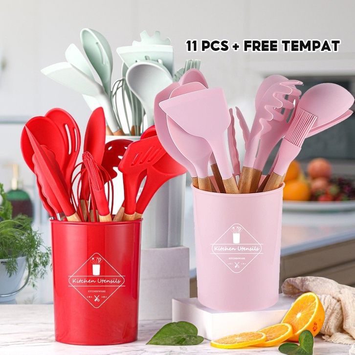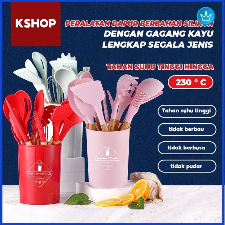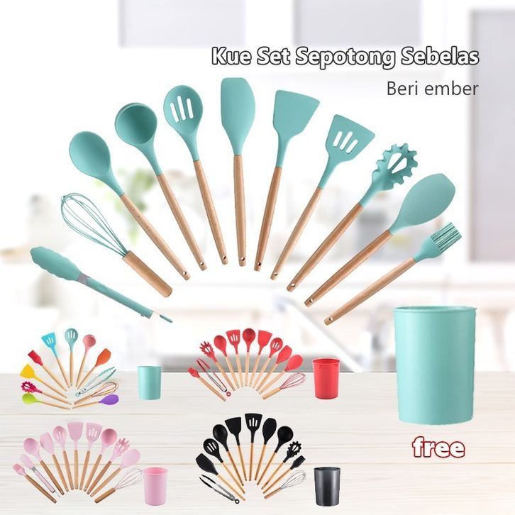 GROSIR Blue Crown Sutil silikon Spatula Silicone sodet Alat Masak set 12pcs / vs-1809 ugigc