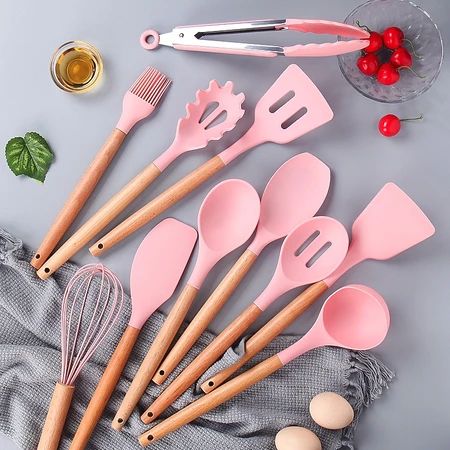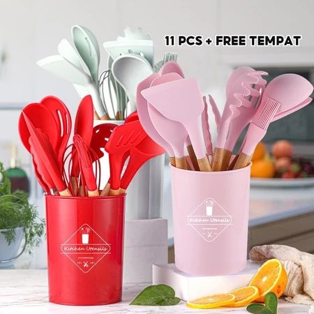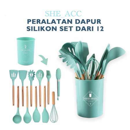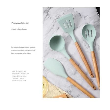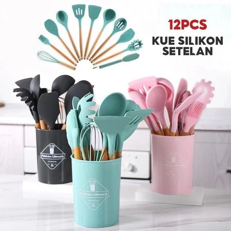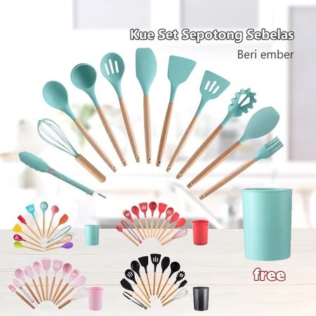 TERMURAH 12 Pcs Set Sillicone Spatula Utensil Set Dapur Peralatan Kayu Sendok Pegangan Kayu Spatula Utensil Set