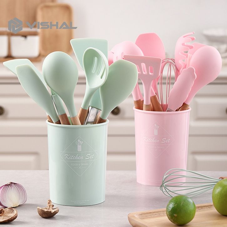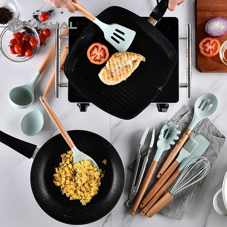 TERLARIS VISHAL 12pcs Kitchen Set Spatula Masker Alat Dapur Spatula Silikon Tahan Panas Peralatan Masak unagb