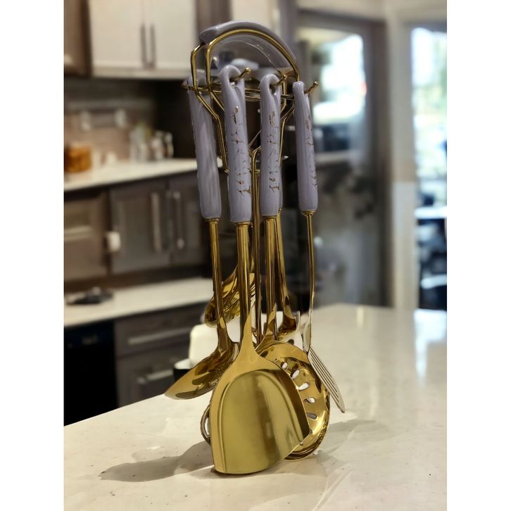 TERLAKU BAKINDO Spatula Masak Gold Jade Set 7 In 1 Emas Elegant Mewah/Spatula Kitchen Tools icacl