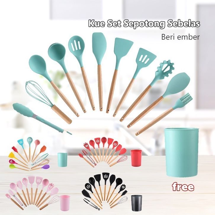 GROSIR [Readystok]Sutil silikon Spatula Silicone sodet Alat Masak set 12pcs / vs-1809-1809 asehmn