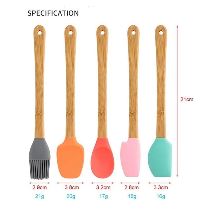 NEW alat dapur 5 Pcs Mini Utensil Set Spatula Mini SILIKON kayu Baking Kuas Sutil Sendok Mini agigmn