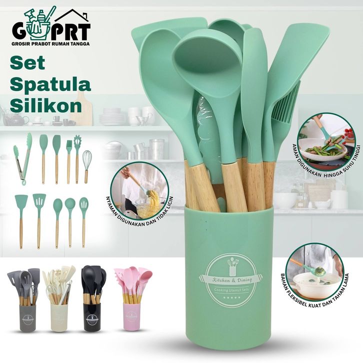 NEW Spatula Silikon 12in1 Sepatula Peralatan Dapur Masak Sutil Cooking Utensil Kitchen Set Silicone uhacmn