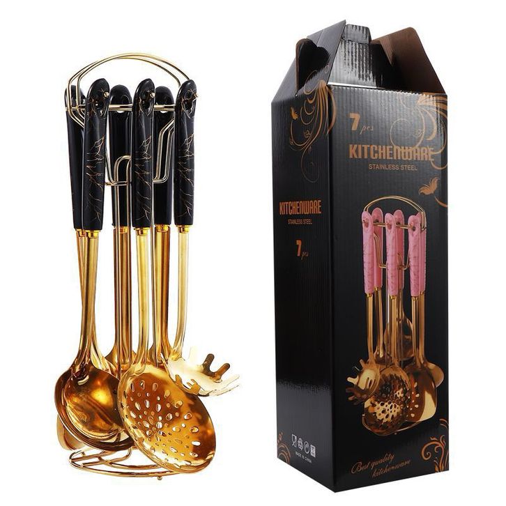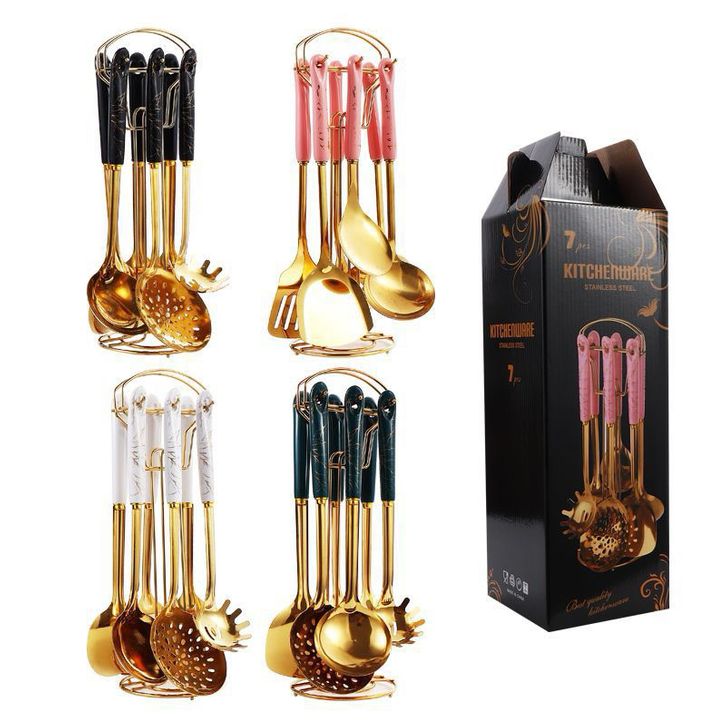 TERLARIS ALAT MASAK SULTAN / SPATULA MASAK SET GOLD JADE SET 7 IN 1 EMAS ELEGANT MEWAH / SPATULA KITCHEN TOOLS /