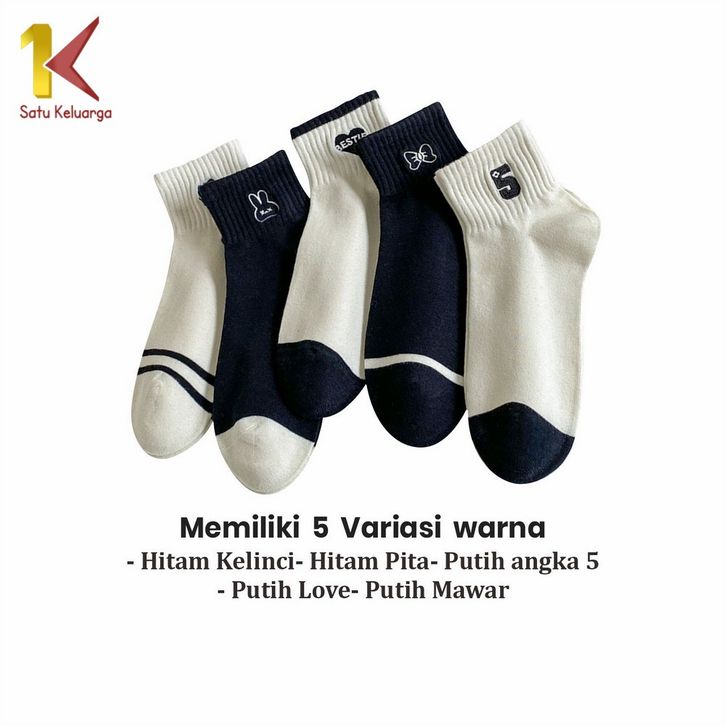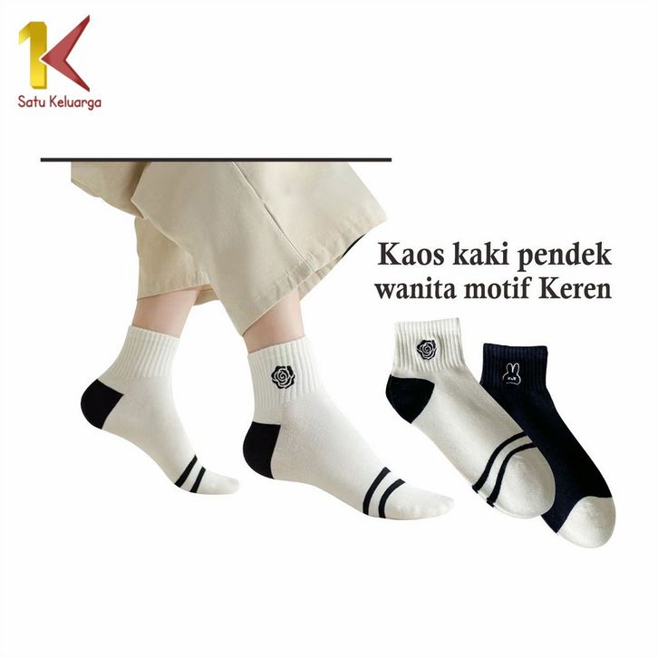 Kaos Kaki Pendek Wanita Motif Bunga Rose Hitam Series P591 Ankle Socks Semata Kaki Unisex Kaos Kaki Love S