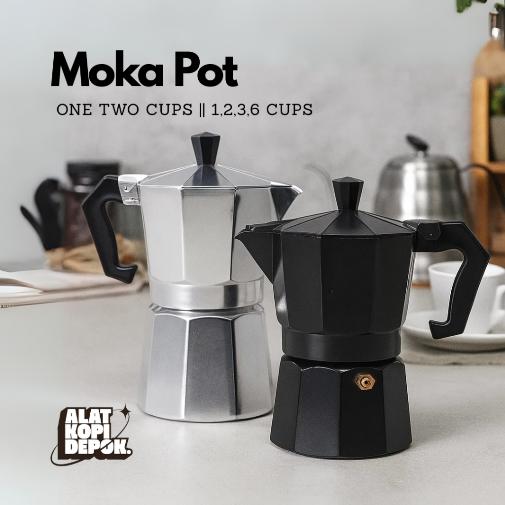 One Two Cups Moka Pot Espresso Coffee Maker Mokapot Hitam Silver 2 cup 3 cup 6 cup 1 cup