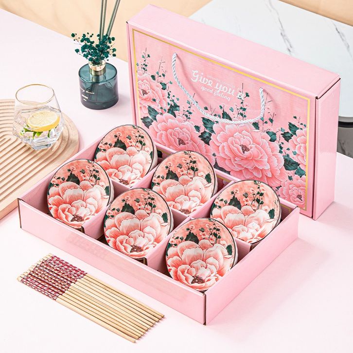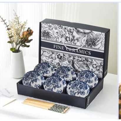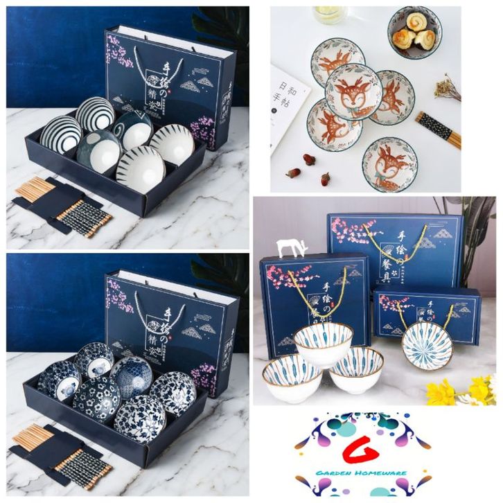 TERLAKU Souvenir Mangkuk Set 6 Mangkok Keramik Hand painted Japanese Wedding Gift Box Hampers Kado ecikk