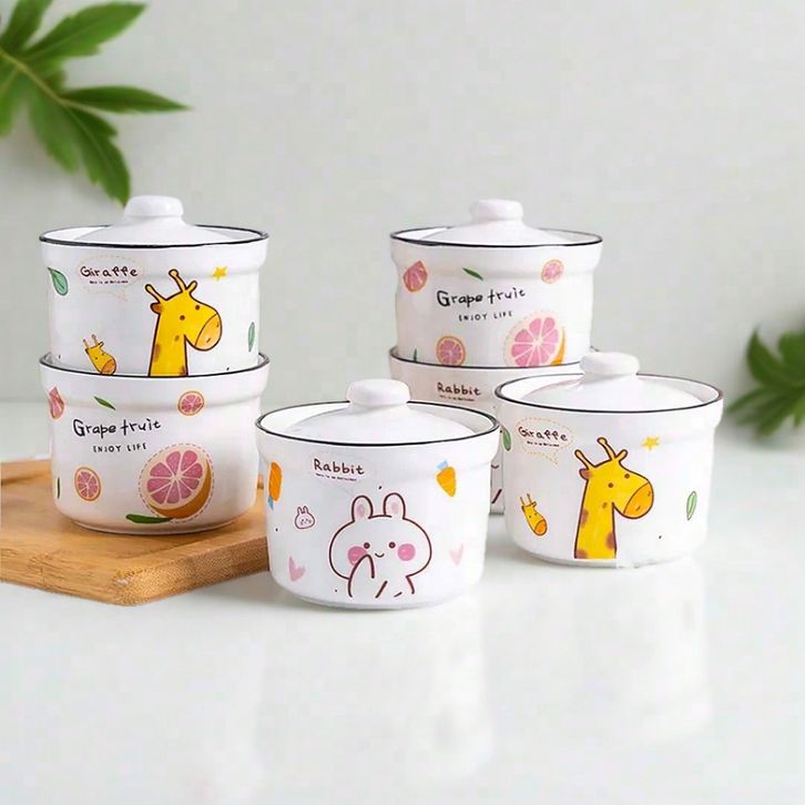 GROSIR Mangkok Telur Kukus dengan Penutup Lucu Mangkok Sup Rebusan Tonik Hidangan Penutup ocofh