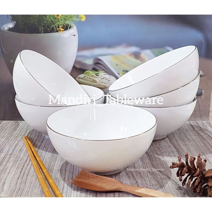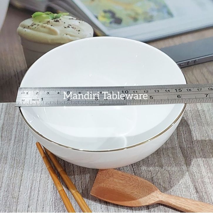 NEW 6 Pcs Mangkok Mie Keramik 16 cm | Gold Line | Hotel Ware | Premium Quality afadf