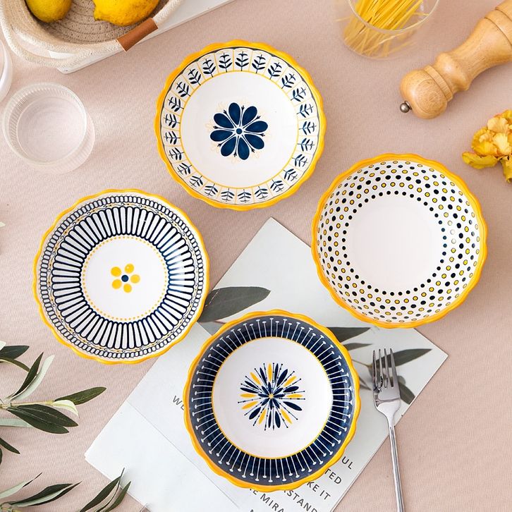 TERMURAH ASHOME Mangkuk bakmi atau bakso keramik blue flower collection Ukuran 6,25 Inch Tahan Panas dan