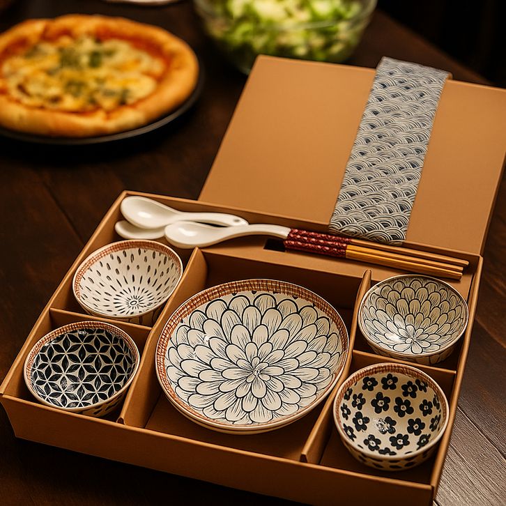 TERLARIS Mangkok Makan Japanese Cowhide style / Japanese Bowl mangkok piring hampers box souvenir / Gift Hadiah