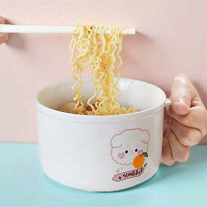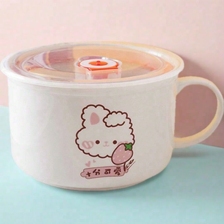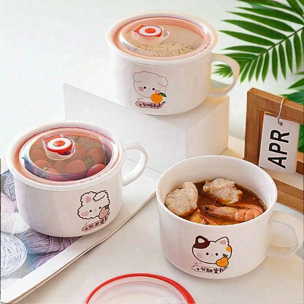 NEW Mangkok Mie Instan Cute Tutup dengan Pegangan igafmn