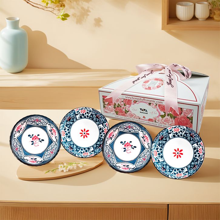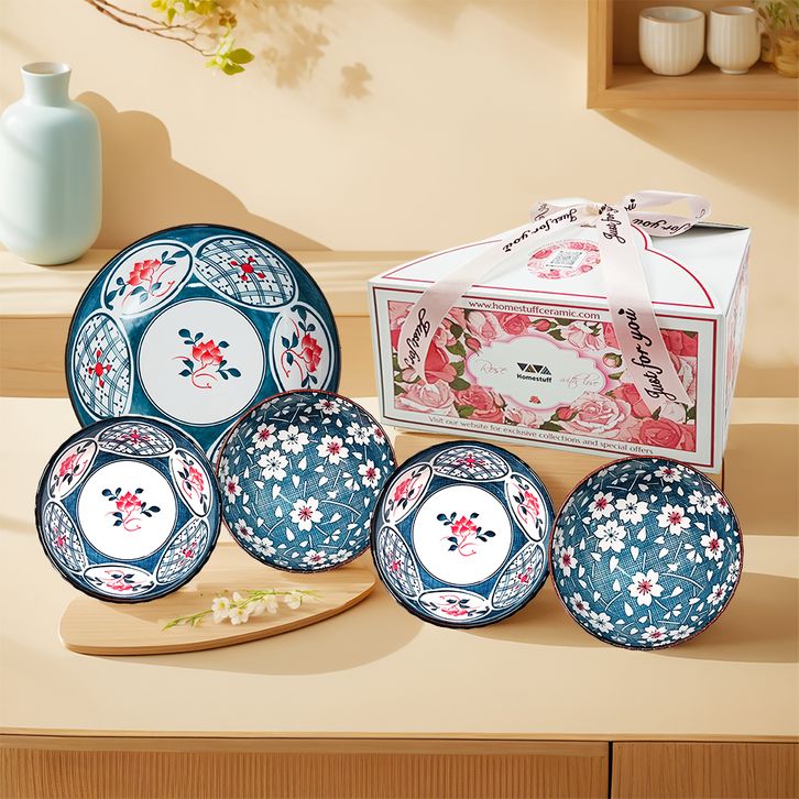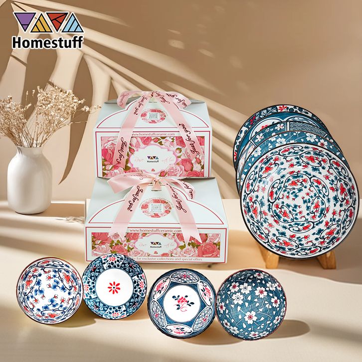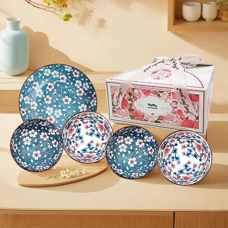 GROSIR [SNI] HOMESTUFF Wedding Gifts Hampers Set Piring dan Mangkok Mewah / Set Hampers Box Pink Rose / Set