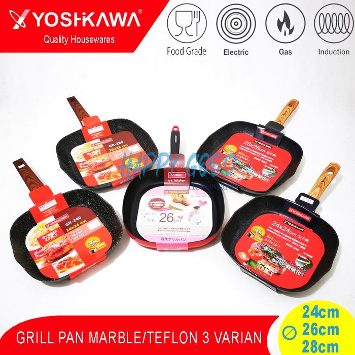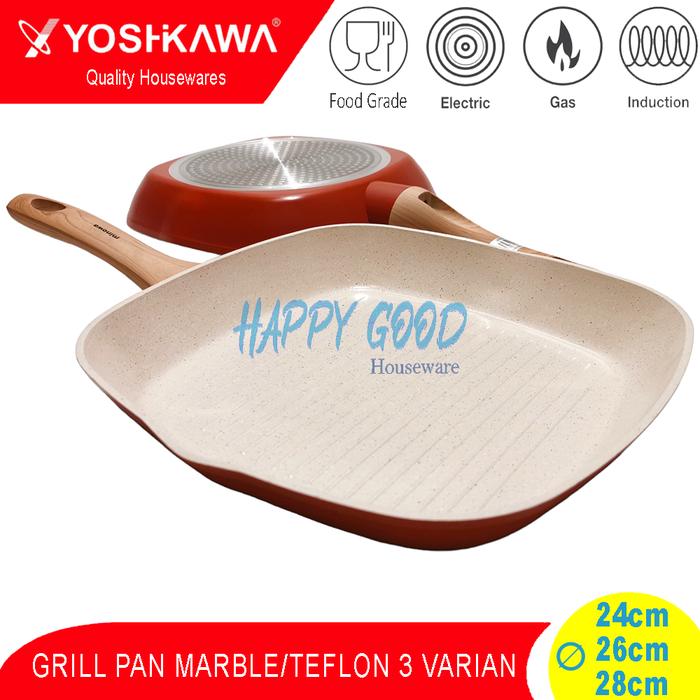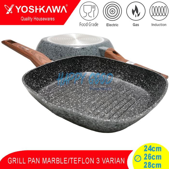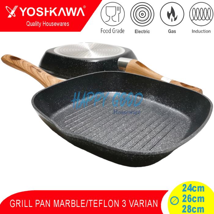YOSHIKAWA 24-26-28CM 5 VARIAN GRILL PAN/BBQ MULTIFUNCTION SEGI TEFLON/MARBLE ANTI LENGKET