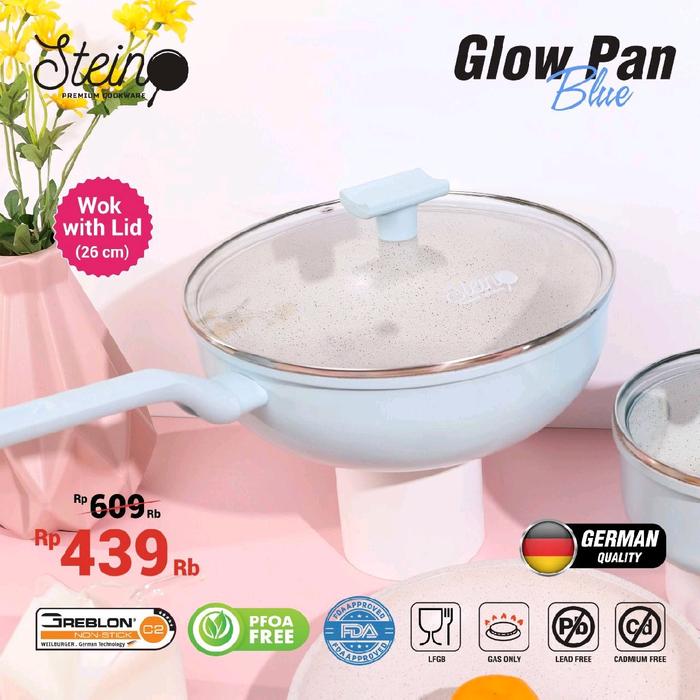 Steincookware Stein Wok 26 cm Wajan 26cm Glow Glowpan Pink Biru Ungu Original