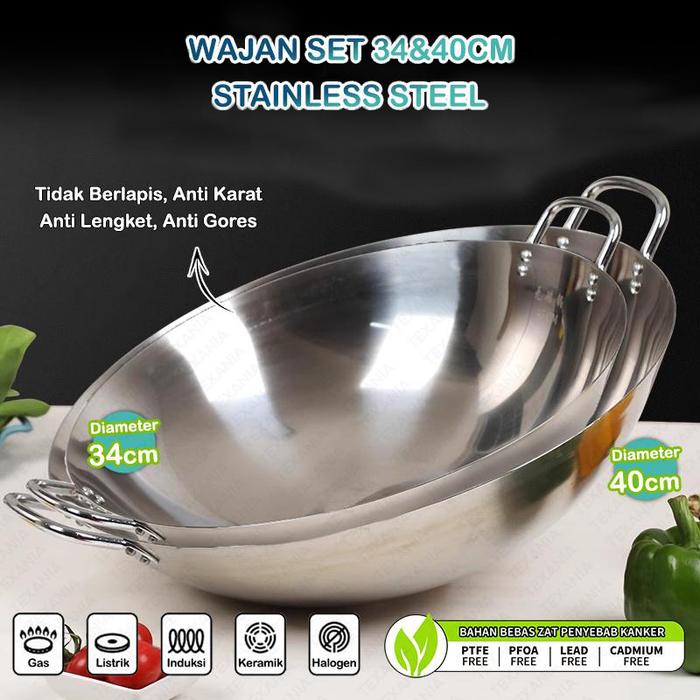 Home Inspiration Wajan / Kuali Stainless Steel Anti Karat Anti Lengket Ukuran 34 & 40cm Kitchenware
