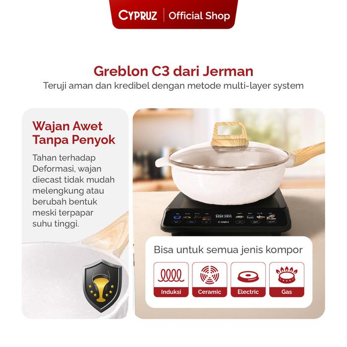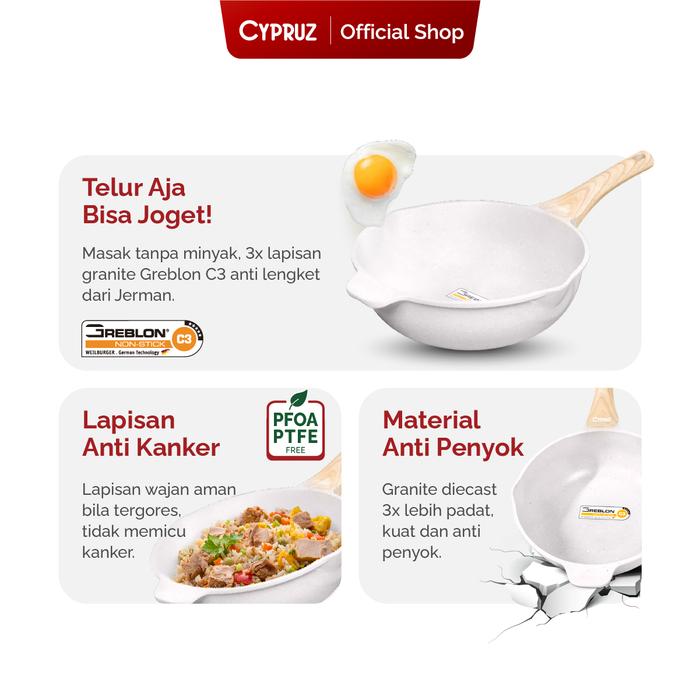 Cypruz Fry Wok White Granite Diecast Wajan Anti Lengket 24cm