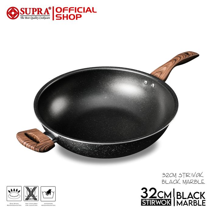 SUPRA Panci Alumunium Anti Lengket Stir Wok 32 Cm - Black Marble