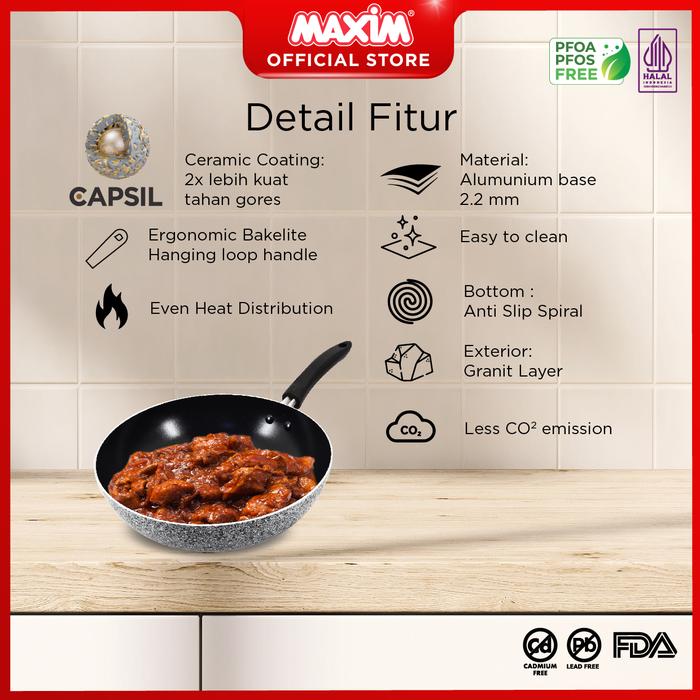 Maxim Neostone Wajan Ceramic Anti Lengket 28cm Stirfry Wajan Cekung