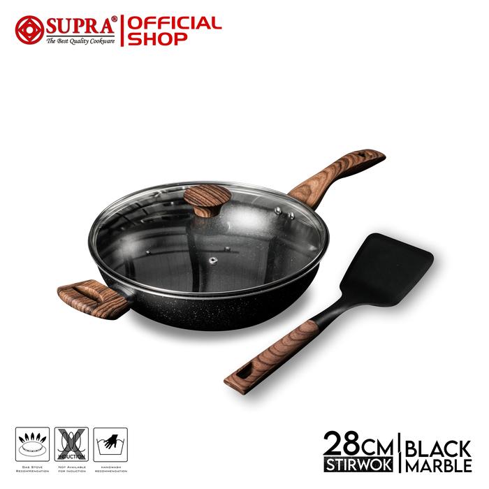 SUPRA Panci Alumunium Anti Lengket Stir Wok 28 Cm - Black Marble