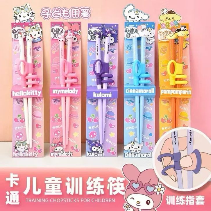 GROSIR Sumpit Belajar Anak Chopstick Learning Training With Holder Kuromi Melody Pompurin Kitty Cinnamoroll osahl