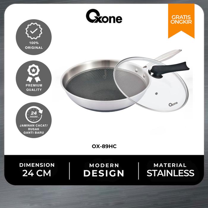 Oxone Wajan Fry Pan Honey Comb Anti Lengket 24 cm 30 cm StainlessSteel OX89HC OX90HC Wok Kitchenware