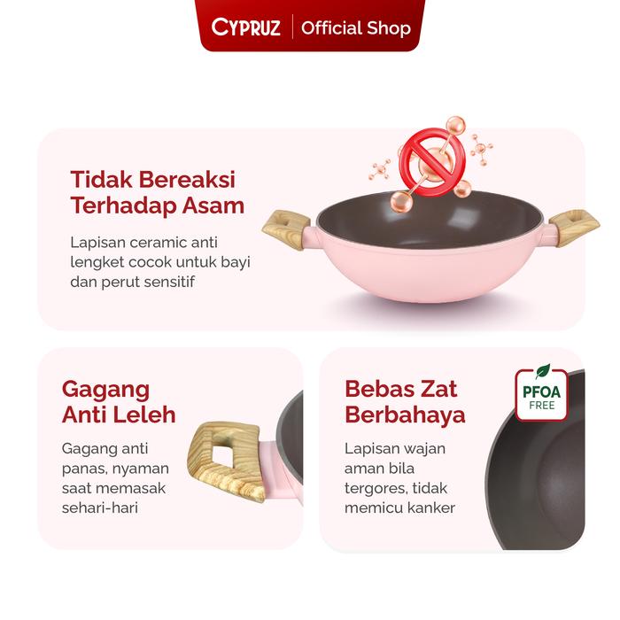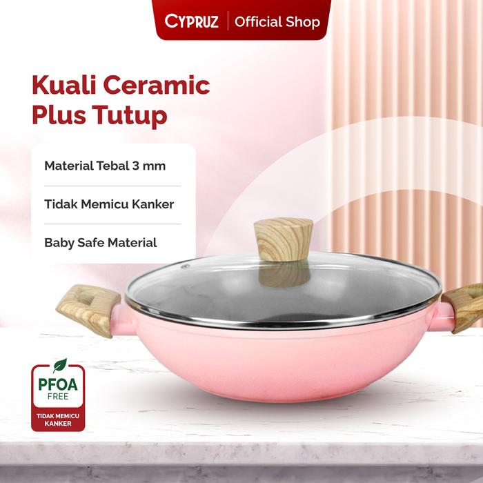 Cypruz Pink Ceramic Wok Pan / Kuali Anti Lengket + Tutup