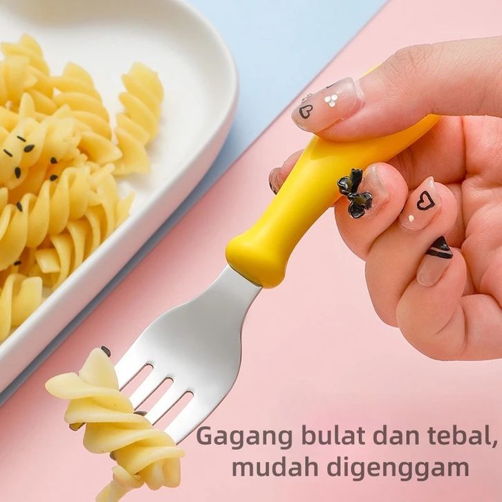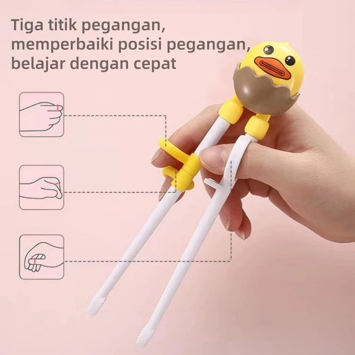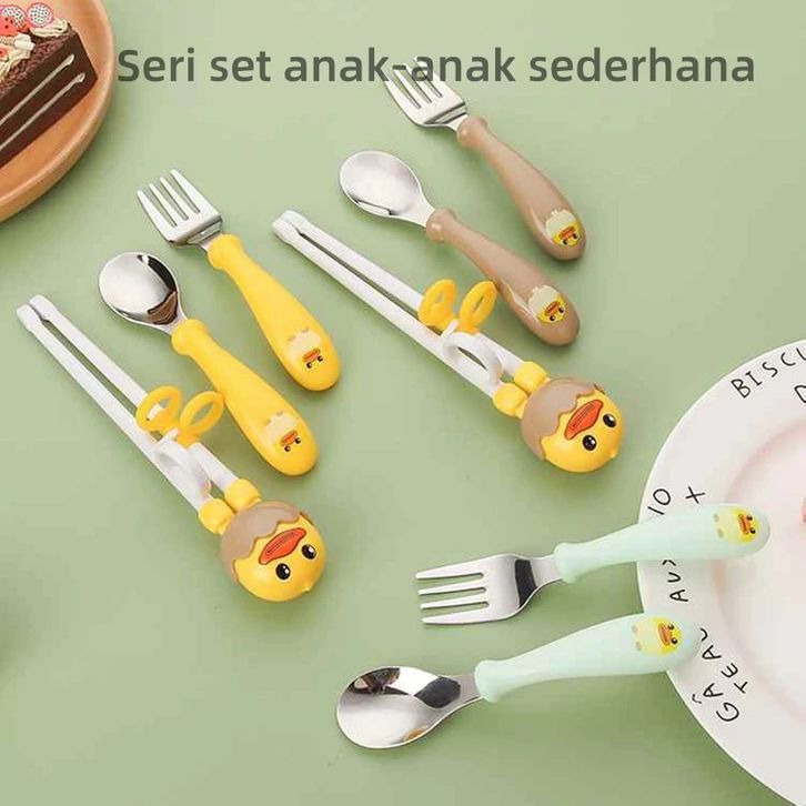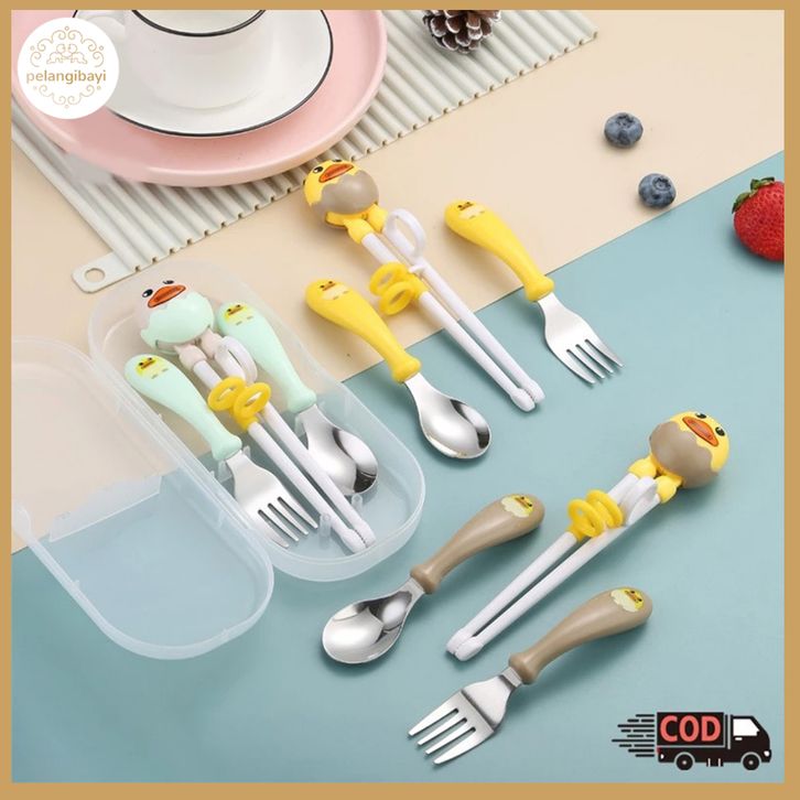TERBARU 3 in 1 Set alat makan kartun anak Sumpit Pelatihan Bayi Stainless Steel + Sendok + Garpu Set ecabh