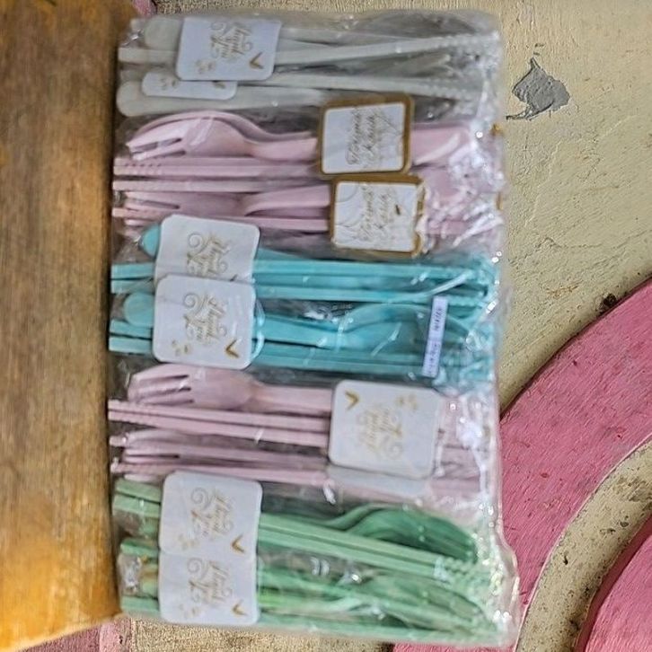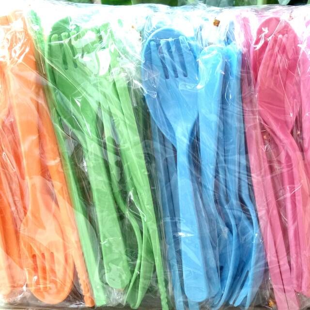 TERLARIS ( isi 50pcs ) Sendok garpu sumpit warna kemasan plastik ibilr