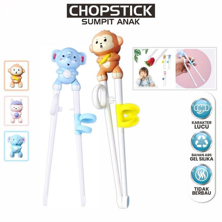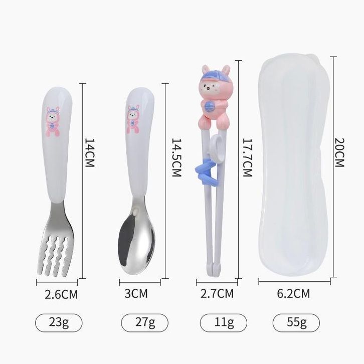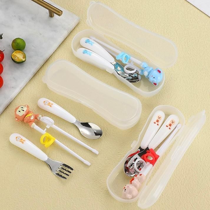 NEW SUNWAYSTORE - Sumpit Sendok Garpu Anak Karakter Lucu SUS304 / Sumpit Latihan Anak / 3in1 Set Alat Makan