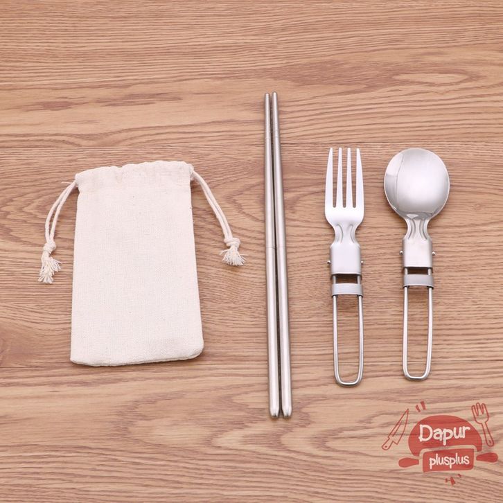 GROSIR Sendok Garpu Sumpit Lipat Portabel Stainless Steel | Alat Makan Travel ifebg
