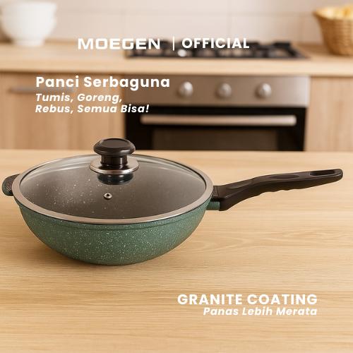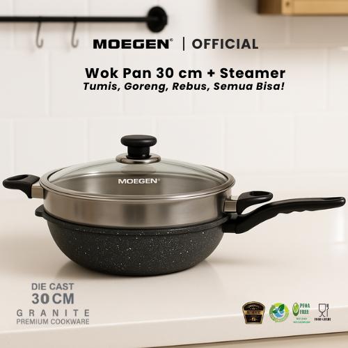 MOEGEN Color Wok Pan 30 cm With Steamer Granite Coating Anti Lengket